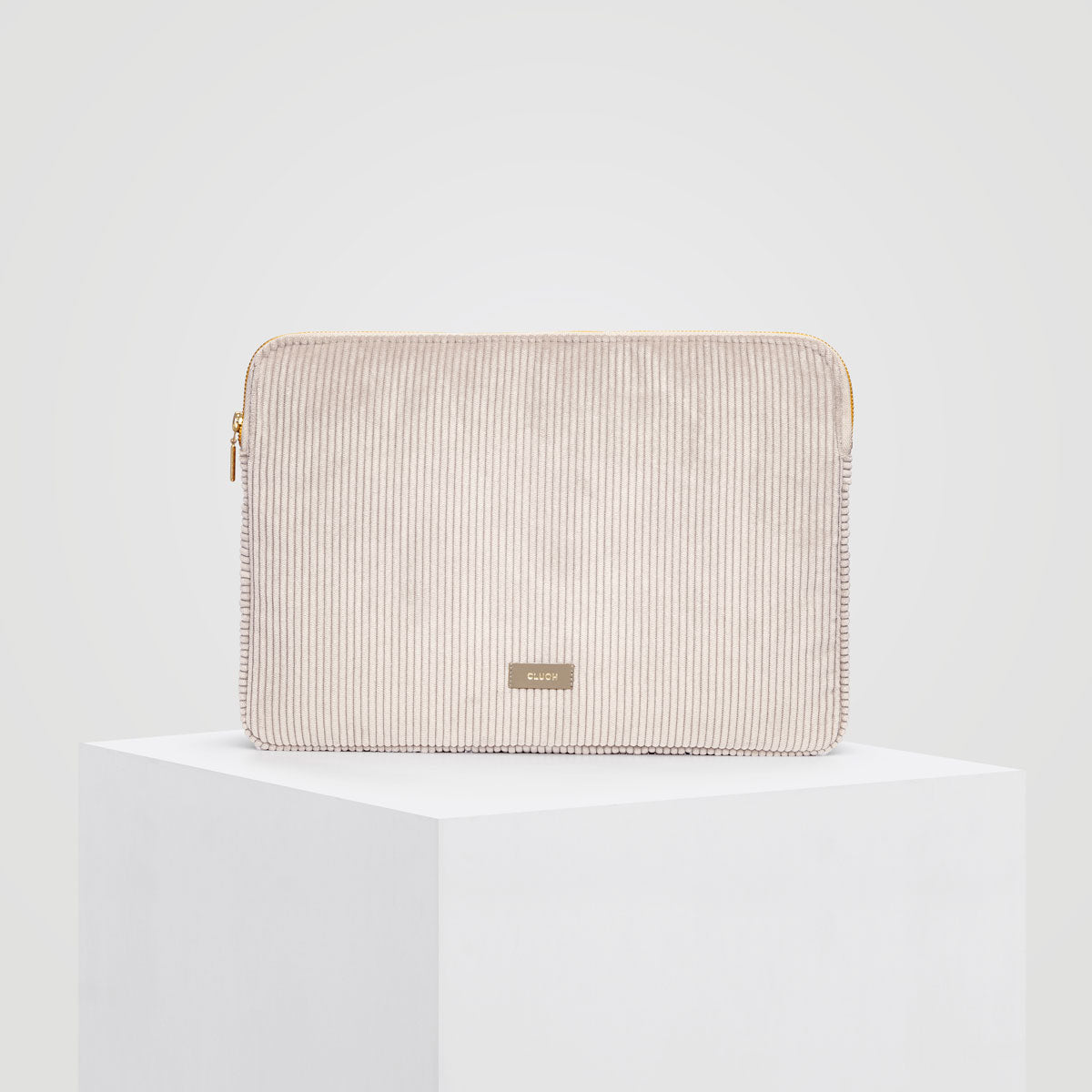 Mala de mão almofadada em pele taupe com bolso no verso. Compatível com portáteis de...