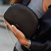 Croissant leather bag with interior and exterior pockets. Zip closure and adjustable shoulder strap. Proudly...
