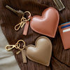 Heart shaped keychain in taupe leather and gold metallic finishes.