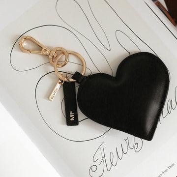 Classic keychain in black leather. Golden metallic finishes. Customizable up to 3 characters. Proudly produced...