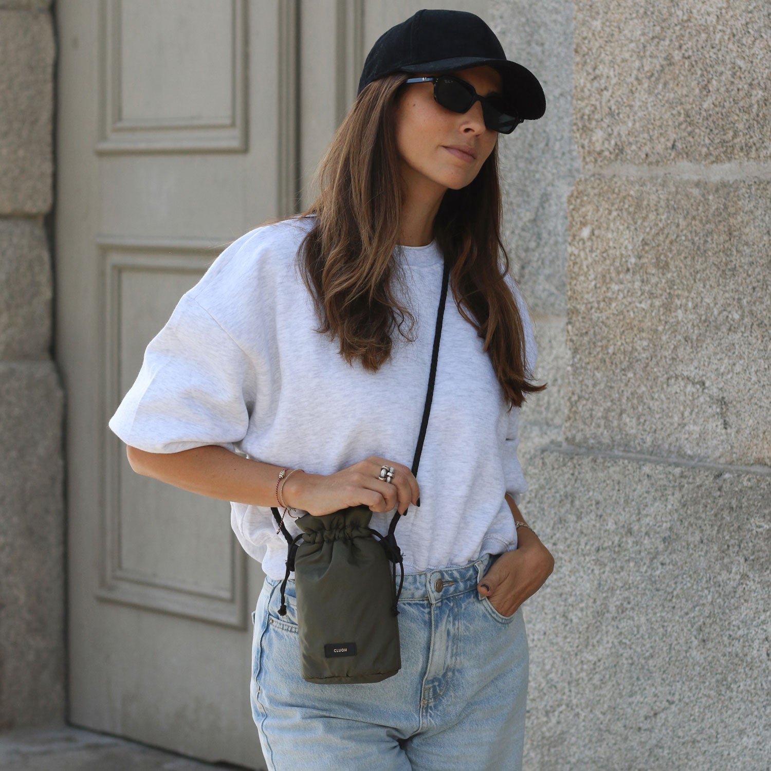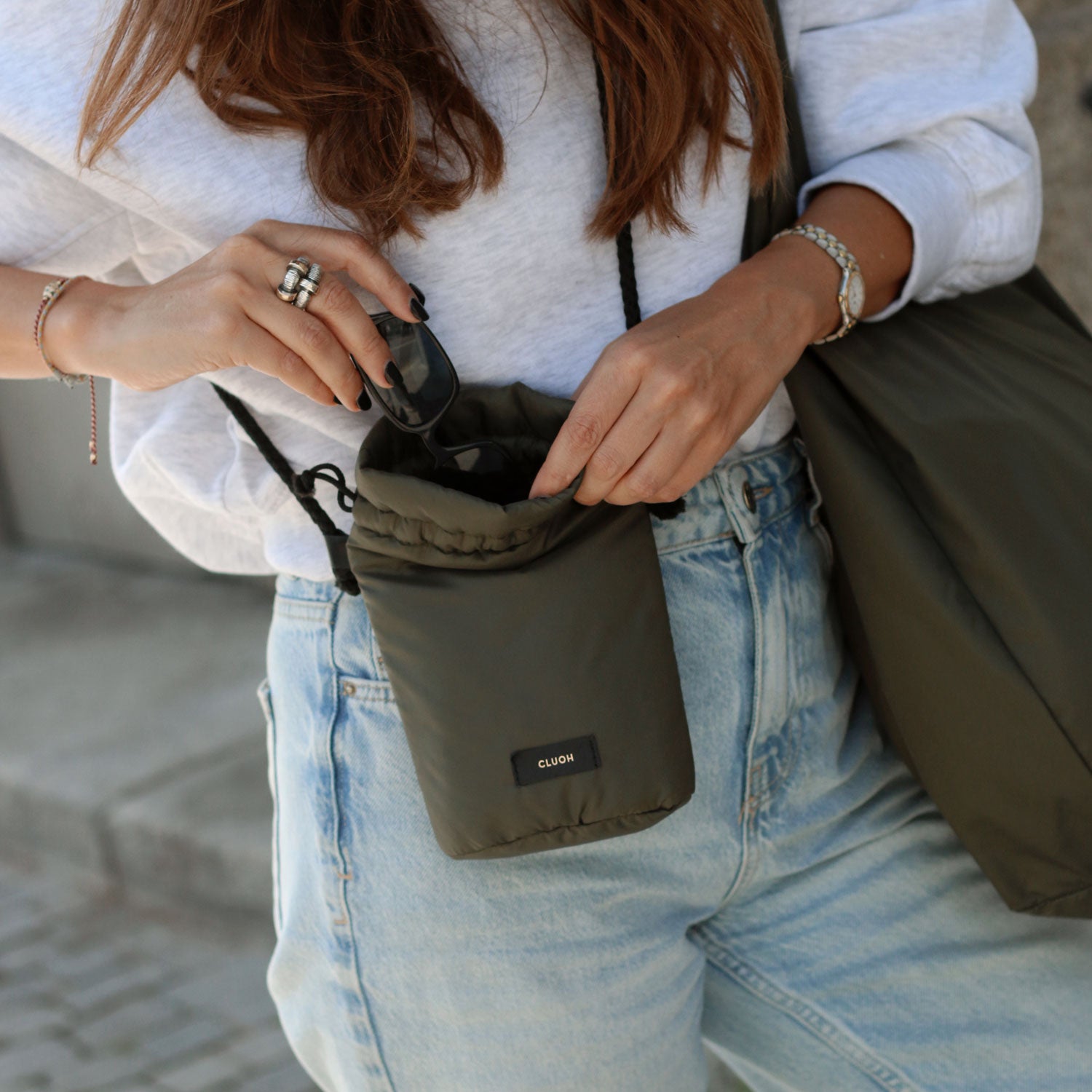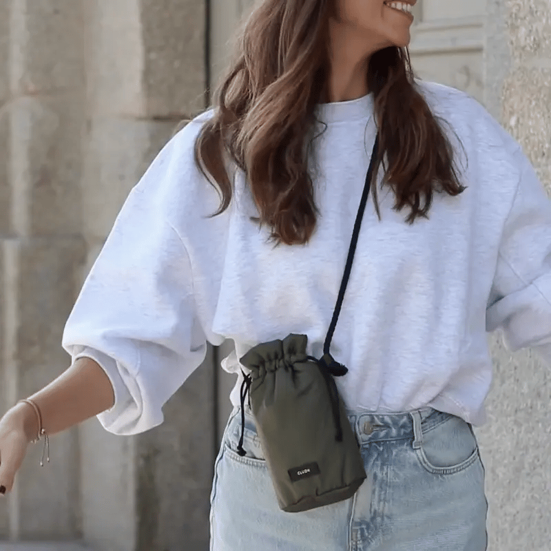 Mini bag in waterproof nylon with drawstring closure system and shoulder strap.