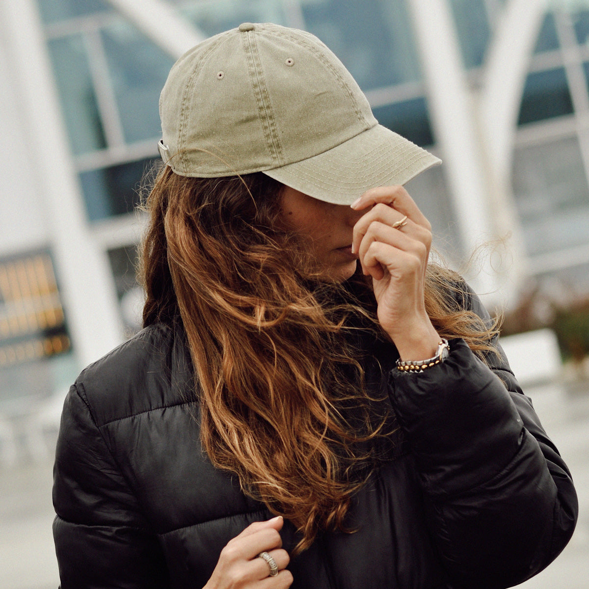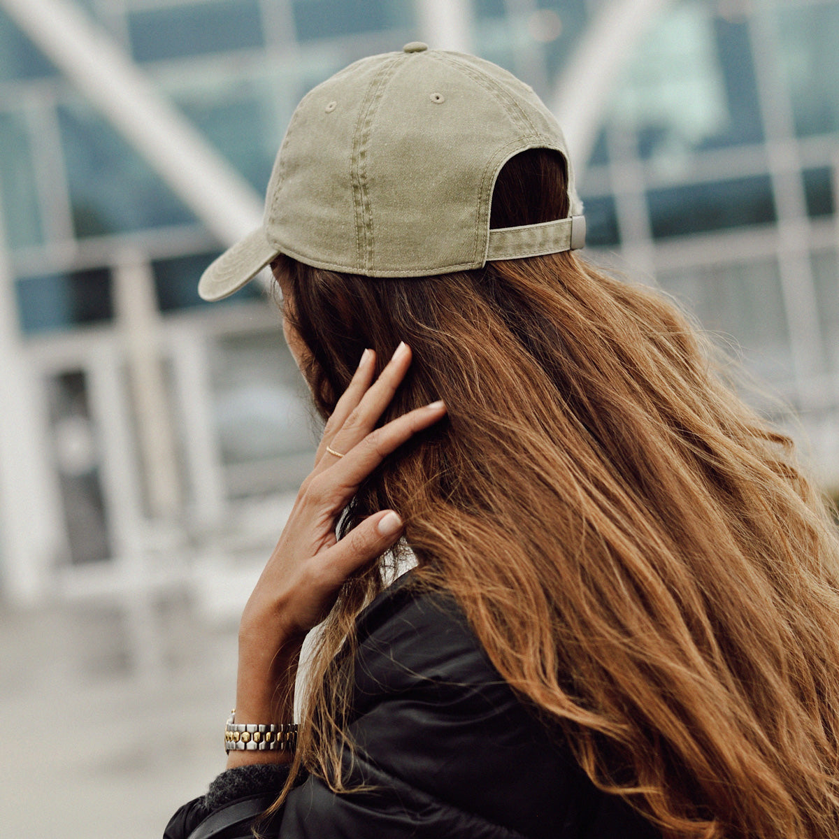 Boné caqui ajustável com bordado CLUOH na parte de trás.