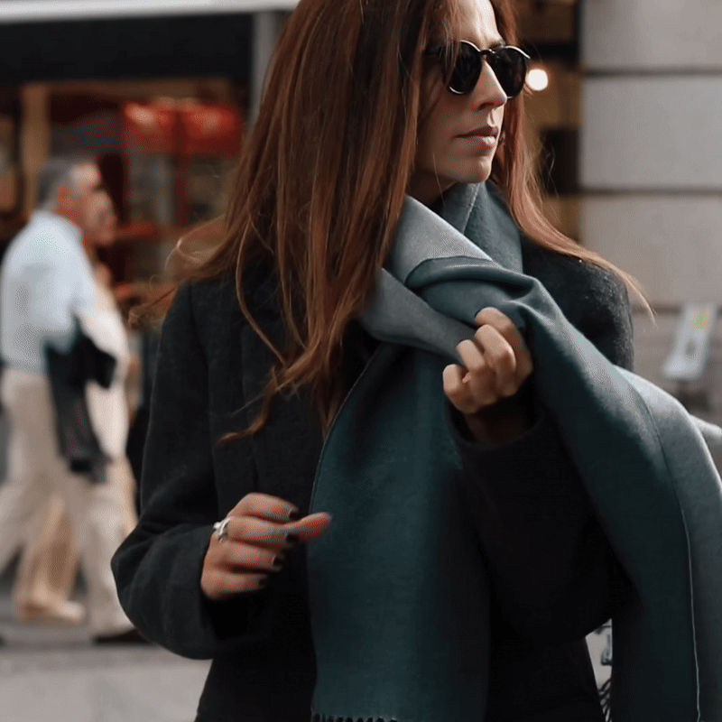 Cachecol / manta toque extra suave, cor verde de uma lado e cinzenta no outro.