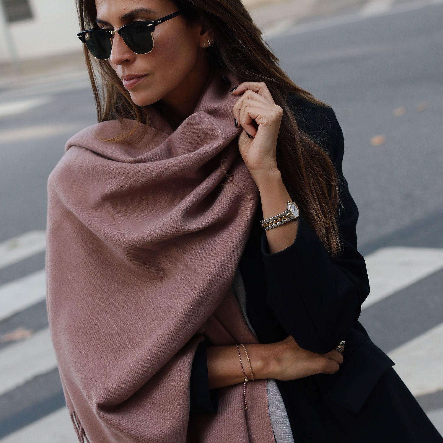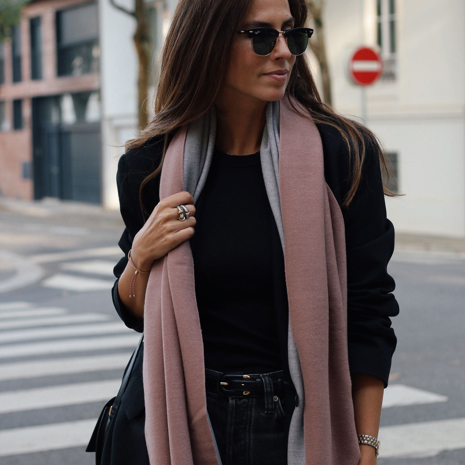 Cachecol / manta toque extra suave, cor de rosa de um lado e cinza claro no outro.