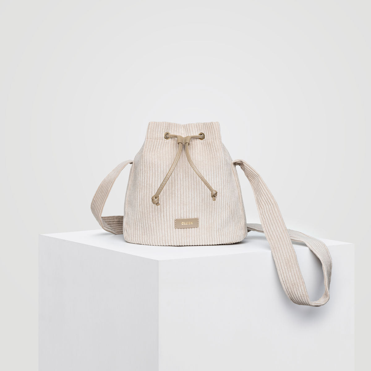 Bucket bag em bombazine com forro almofadado em algodão e bolso interior.