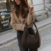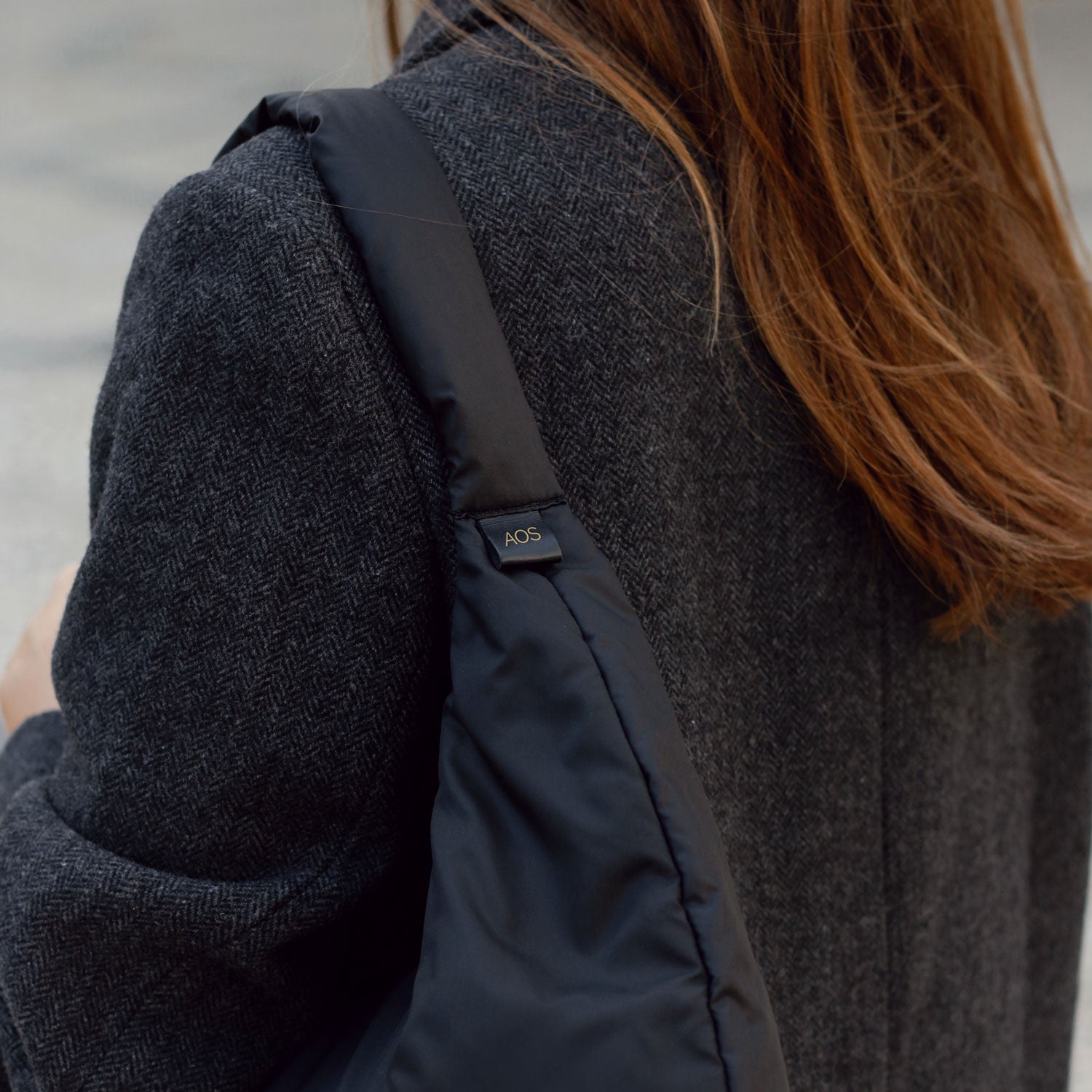 Carteira de ombro em nylon impermeável com fecho zíper e bolso interior.