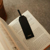 Marcador de livro em pele na cor preta.
