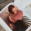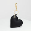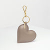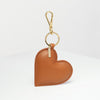 Porta-chaves com forma de coração em pele camel e acabamentos metálicos dourados.