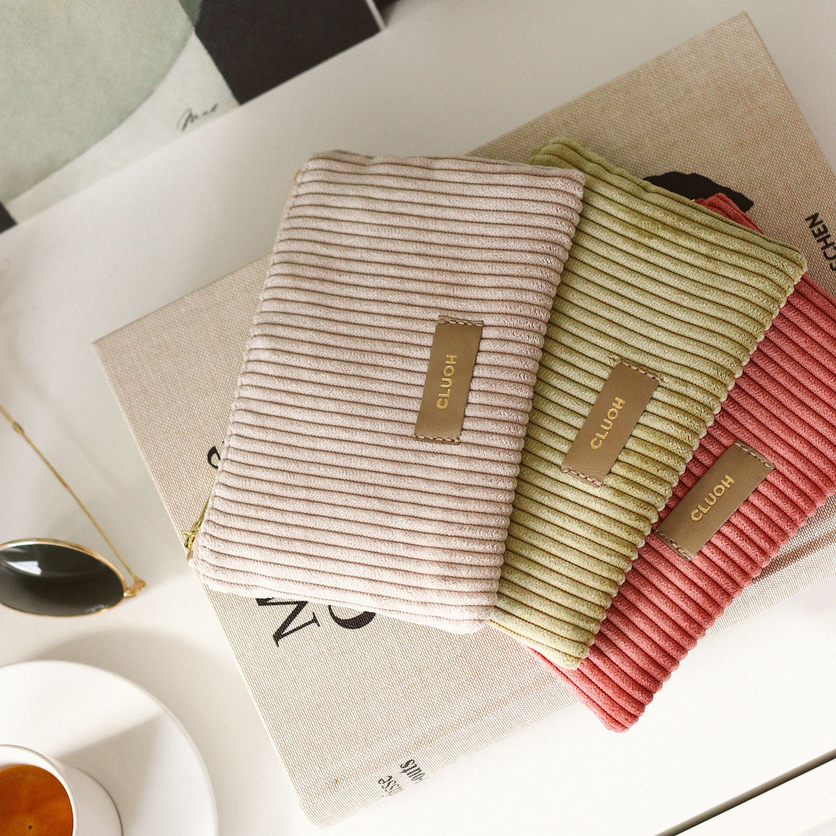 Fecho com acabamento metálico e etiqueta em pele com cunho dourado.