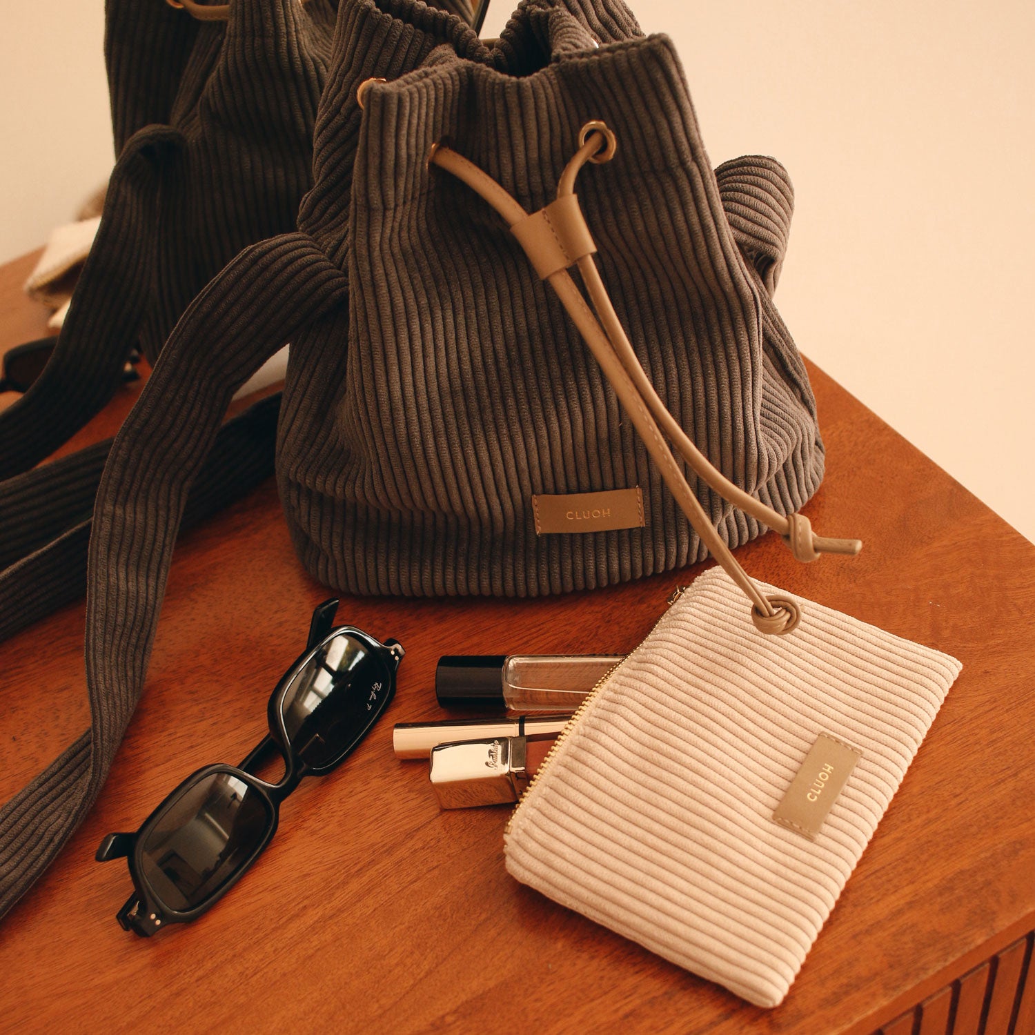 Fecho com acabamento metálico e etiqueta em pele com cunho dourado.